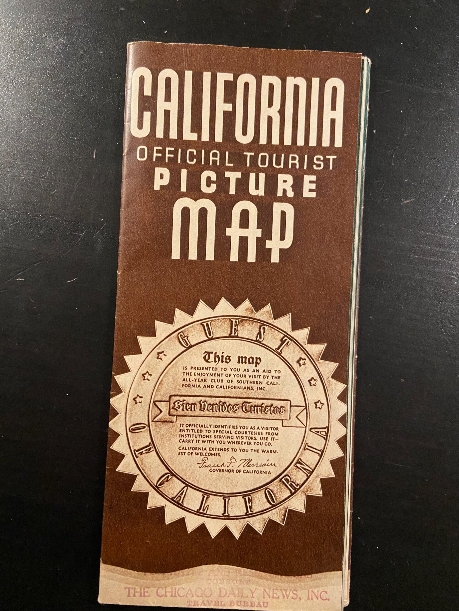 Key Feature: A formal “Message to Tourists” signed by Governor Frank Finley Merriam.