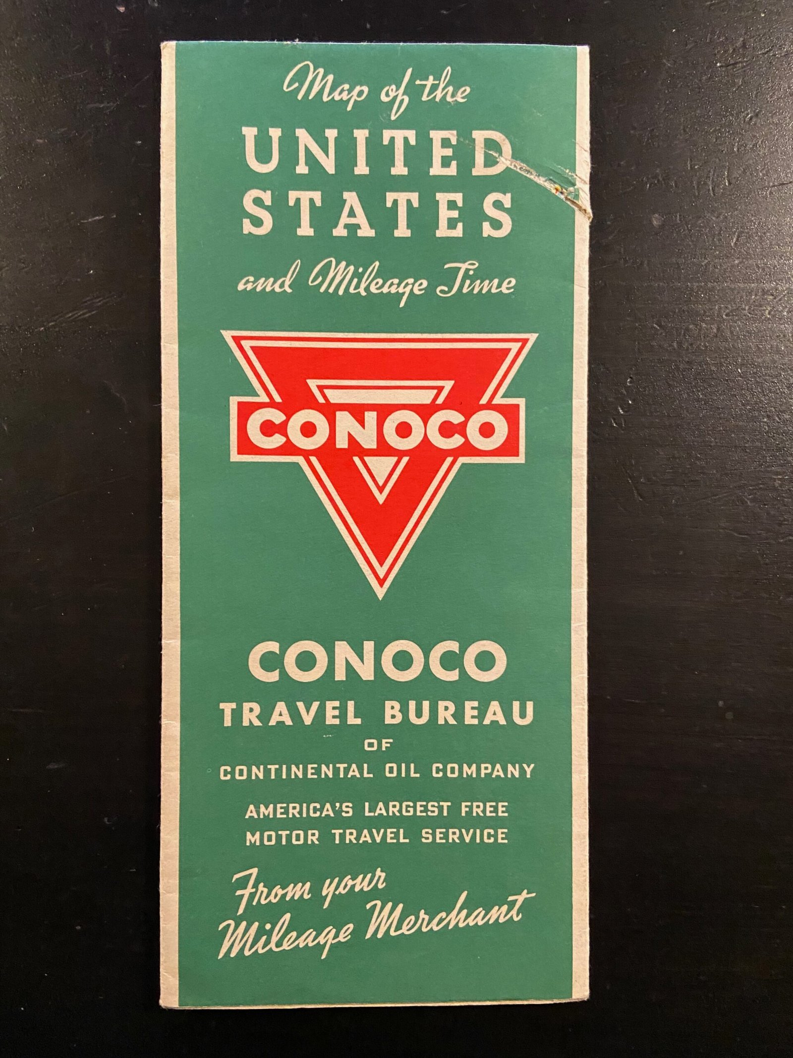 Aesthetic: Classic 1930s Art Deco-influenced typography and Conoco “Red Triangle” branding.