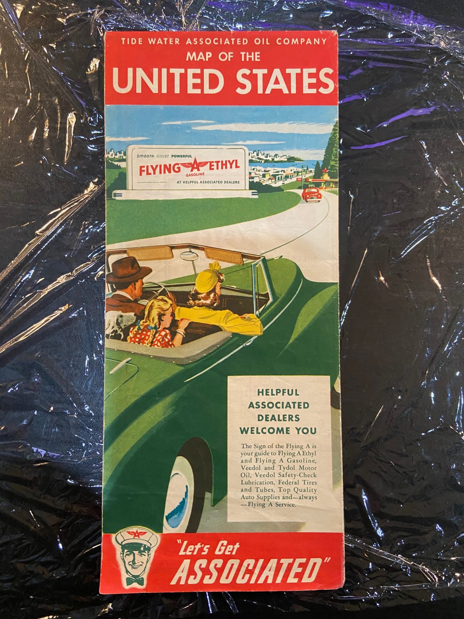 + Shipping1940s United States Road Map | Flying A Ethyl Gasoline